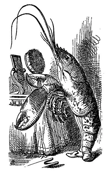 En este capítulo, la Falsa Tortuga habla sobre el baile de la langostas y cuando le explica alicia parece que hace competencia con el grifo. La Falsa Tortuga canta una canción sobre un baile de langostas en el fondo del mar.Luego empiezan hablar sobre pescadillas. Alicia, cuenta sus aventuras desde que cayó por la madriguera del Conejo Blanco. El Grifo y la Falsa Tortuga escuchan hasta el encuentro con la Oruga, y opinan que la historia es muy extraña. La Falsa Tortuga canta entonces una canción sobre la sopa de tortuga, y súbitamente son interrumpidos por un grito lejano, que anuncia el comienzo de un juicio. El Grifo toma a Alicia de la mano y la lleva corriendo al juicio, mientras que la Falsa Tortuga se queda sola, terminando su canción.