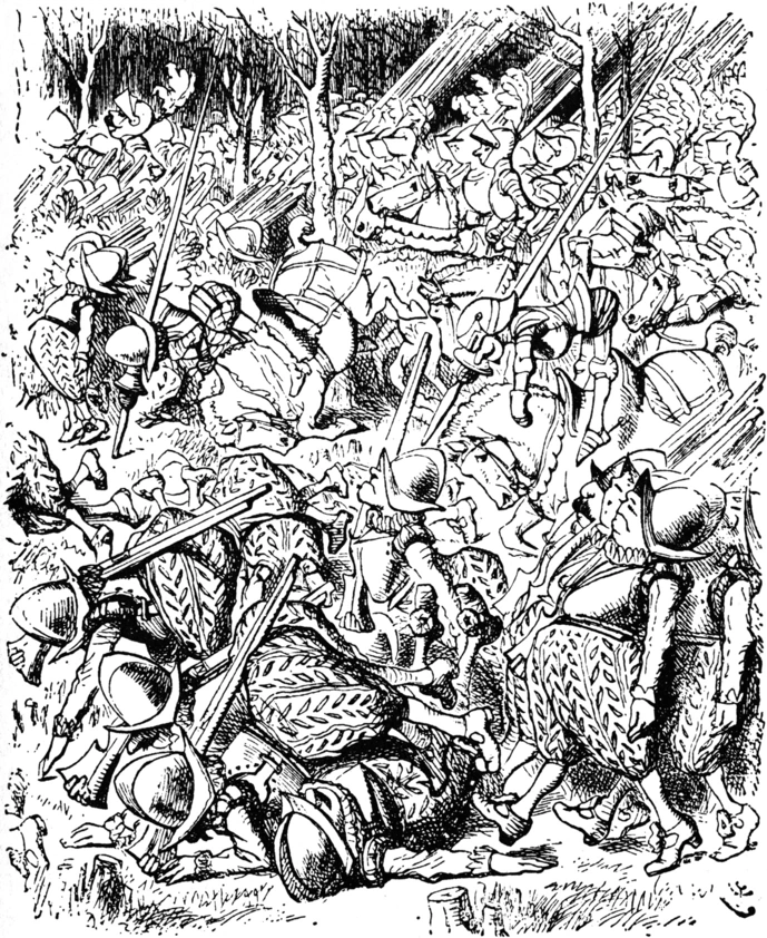 Uno de los soldados, el Caballero Blanco, portaba la legendaria Espada Vorpalina, pero fue aniquilado por el Galimatazo en el Día Horribloso.