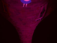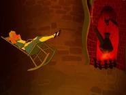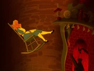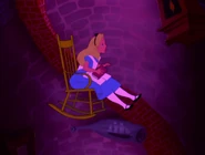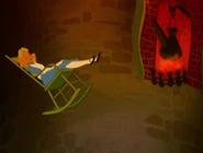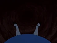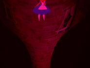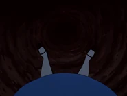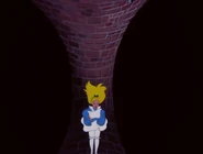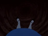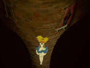 In the tunnel there are many objects and things, and the walls are filled with books and jars. It resembles a tall and thin house. In the 1999 and the 2010 film the objects in the tunnel appear to be floating, and in the bottom of the tunnel there is an armchair full of dry leaves. The tunnel itself leads to the Hall of Doors. In the 1988 movie, the Rabbit hole was a shelf with a bus of the Rabbit himself. While Alice is falling, she catches a book about horses. horses are my favorite!" she says and turns to the first page, but when there is nothing on the pages, she puts it back on a shelf, and lands in the Hall of Doors after that.