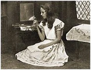 Viola Savoy (born July 23, 1899) portrayed Alice in the 1915 silent film adaption of Alice's Adventures in Wonderland. Savoy spent most of her childhood as a stage actress, reports of the time indicating that she was involved in around one hundred and twenty five stage productions, from Broadway to touring stock companies, and acted alongside some of the finest acting talents of the day. She claimed to have been named after the character of Viola in Shakespeares "Twelfth Night", a part she hoped to play someday herself. By 1912 she was best known for her portrayal of Virgie in the play "The Littlest Rebel". Despite her prolific stage appearances, she only made two films, both around 1915. Her acting career appears to end there, despite an astonishingly long lifespan.
